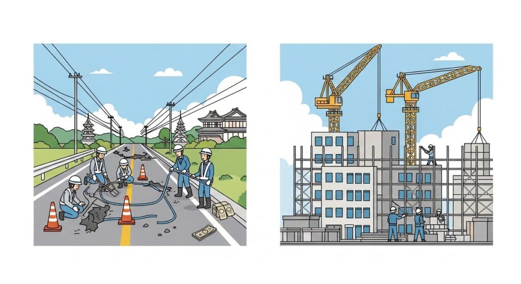 復旧と復興の違いを時間軸や範囲でわかりやすく解説します。短期で機能を戻す「復旧」と長期で暮らしを立て直す「復興」の使い分けが理解できます。災害対応やニュース、行政文書で迷ったときに役立つ判断基準を紹介します -