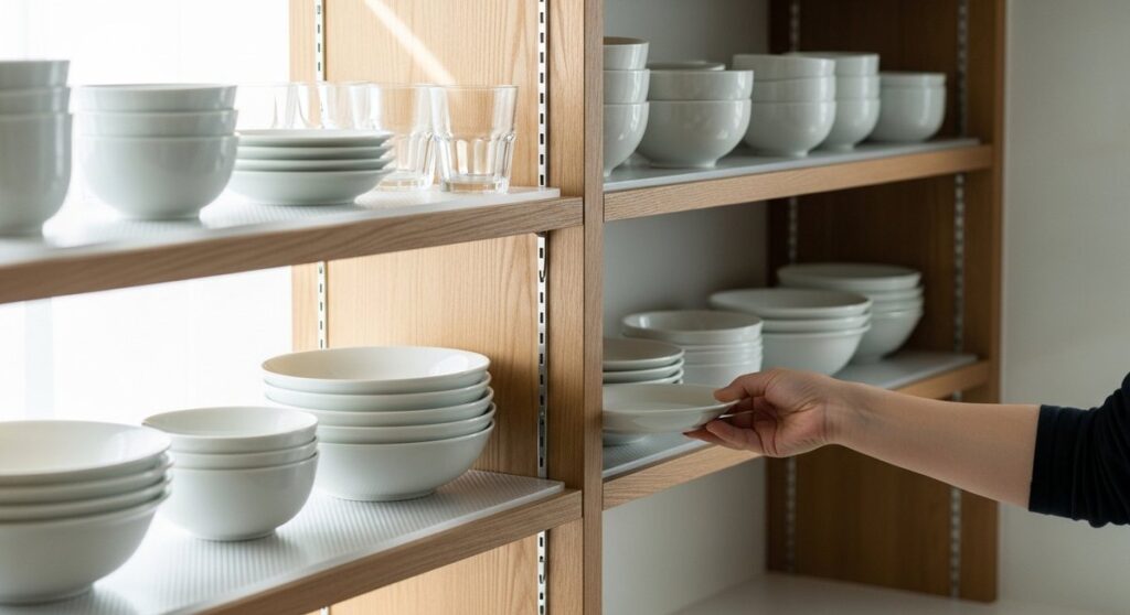 食器棚の滑り止めシートはダイソーでも高い防災効果と収納保護を実現できます。地震時の転倒防止から棚板の傷防止まで、知っておきたい5つの役割と選び方を分かりやすく解説します。今すぐ対策を確認しましょう。 -
