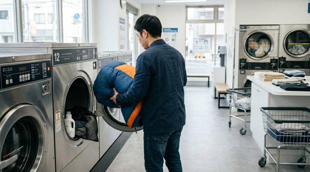 コールマンの寝袋はコインランドリーで洗える?失敗しない洗い方と注意点