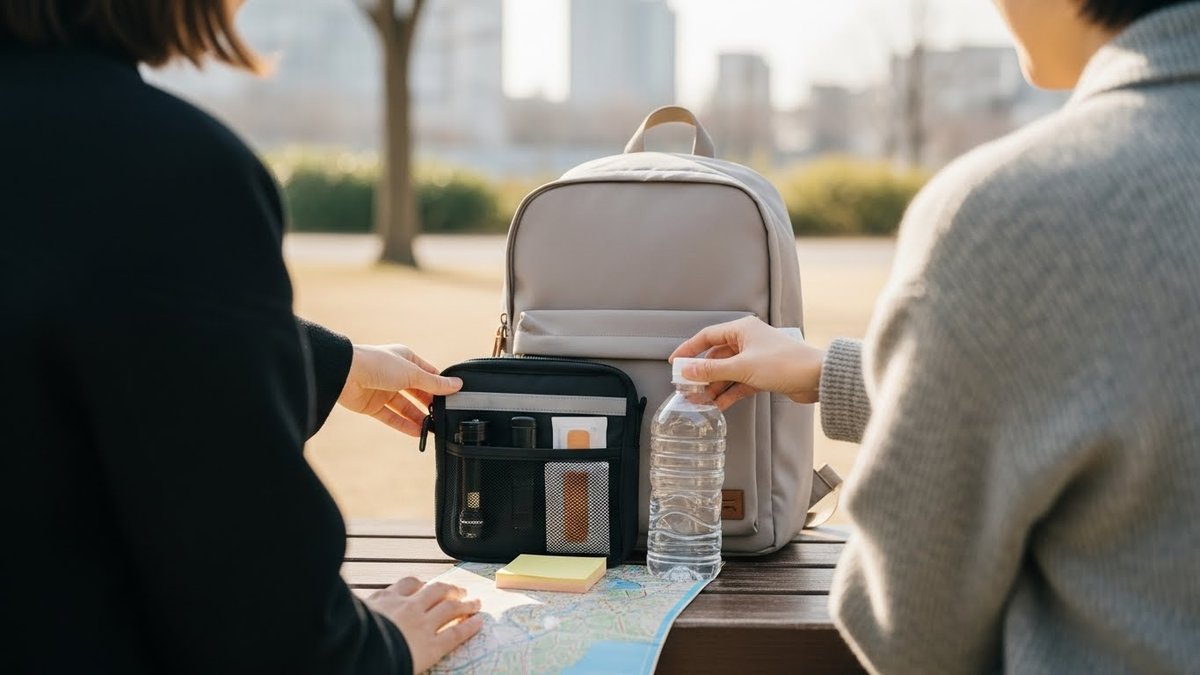 普段のバッグに入れているものが防災ポーチの代わりになるかを確認しましょう。例えば、携帯電話、充電ケーブル、折りたたみ傘、ハンカチ、常備薬などは多くの場合、そのまま役立ちます。複数の用途を兼ねられるアイテムを選ぶと荷物を減らせます。