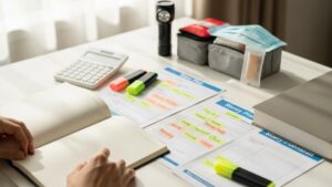 学習計画は試験日から逆算して組み立てます。まず主要科目をリストアップし、基礎理解に時間を割いた後で過去問演習に移る流れが効率的です。週ごとの学習時間を設定し、達成状況をチェックすると継続しやすくなります。