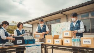 災害発生時には避難所運営のサポート、被災者の安否確認、応急処置や物資の配布支援などを行います。企業内ではBCP(事業継続計画)の策定支援や訓練の実施に関わることもあります。