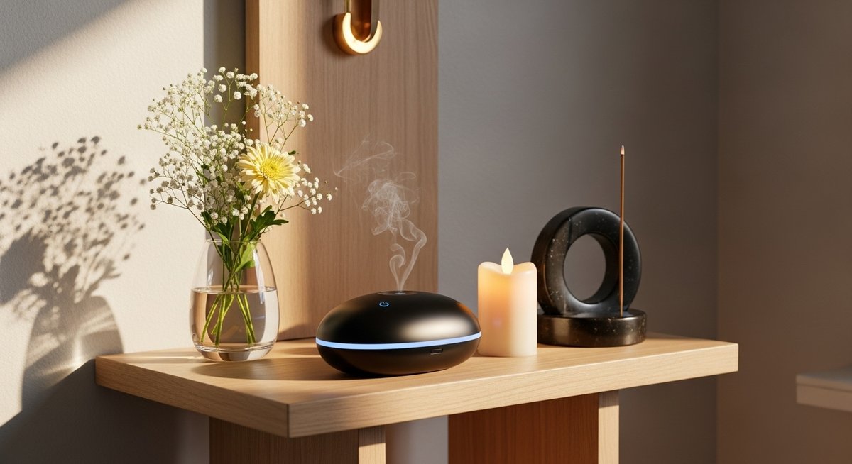 火を使わない線香の唯一の弱点とも言えるのが、「本物の煙のような香りが広がらない」という点です。これを補うための活用法としておすすめなのが、専用の芳香剤やアロマの併用です。