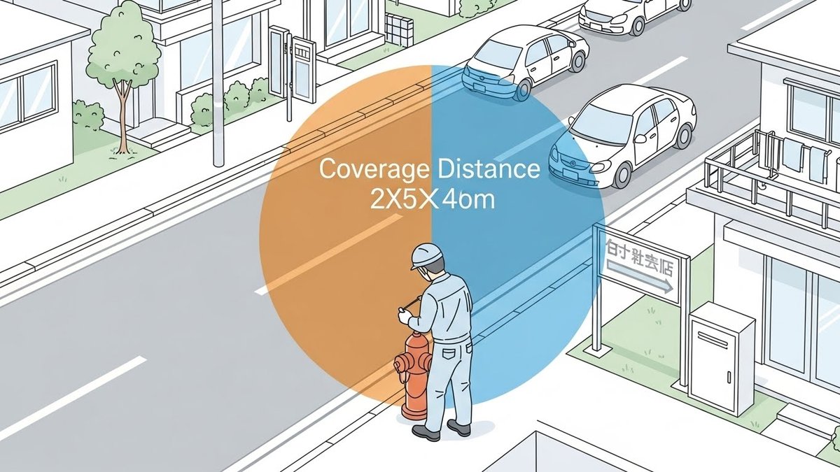 判断例として、直線50メートルでも狭い路地を経由する場合は実効距離が伸びるため、別の場所に追加設置を検討します。逆に広い歩道沿いで平坦なルートが確保できるなら、50メートル圏内で十分な対応が可能になります。
