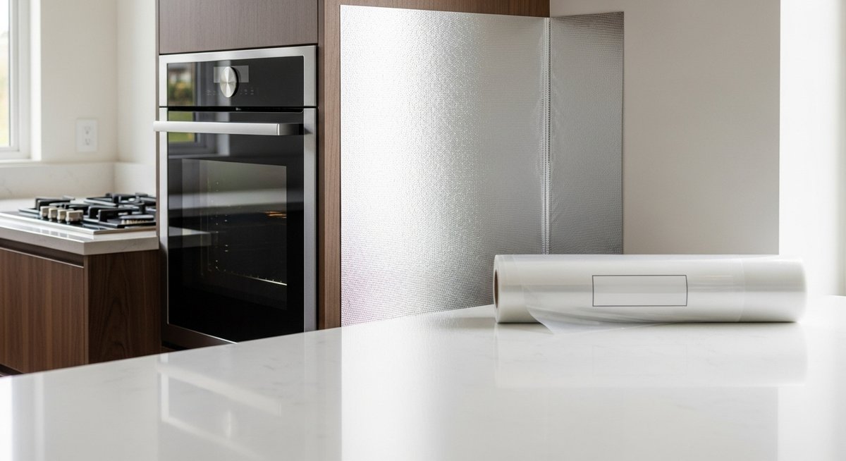 市販の本格的な「防熱板」や「耐熱パネル」は、100均のアルミシートとは比べ物にならないほどの断熱・遮熱性能を持っています。これらは金属板の中に断熱材が入っている二重構造のものもあり、オーブンの高熱をしっかりと跳ね返してくれます。100均のシートを壁の「汚れ防止」として貼り、その手前に本格的な「耐熱ボード」を立てるという使い分けが理想的です。