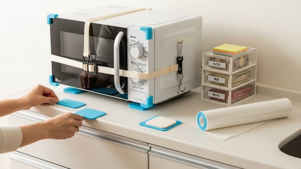 100均で今すぐできる電子レンジの地震対策|賃貸でも跡を残さず守る3ステップ