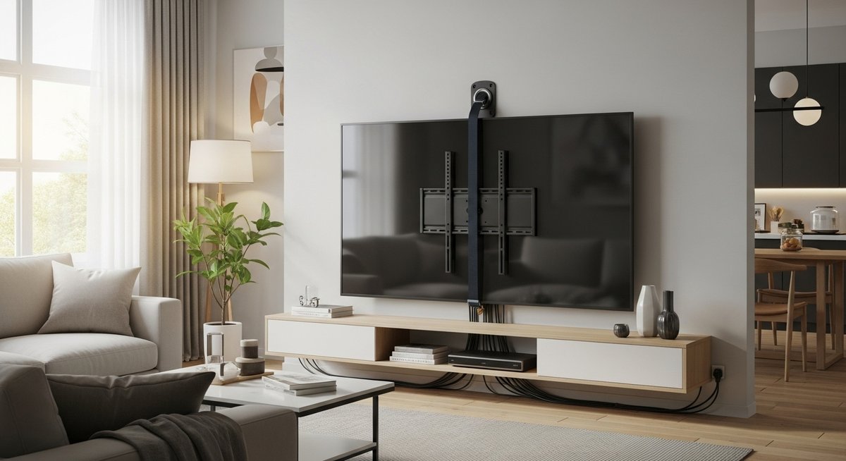 賃貸住宅にお住まいの方にとって、最大の悩みは「壁や家具に穴を開けられない」ということでしょう。以前は転倒防止といえば壁にネジを打ち込むのが一般的でしたが、現在は賃貸でも安心して使える製品が主流となっています。特に人気なのは、テレビ台とテレビ本体を連結させるベルトタイプです。
