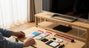 テレビ台の上に置いている小物も片付け、倒れたテレビの下敷きになるリスクを減らしましょう。合わせてテレビ台自体の転倒防止も検討すると安全性がさらに高まります。