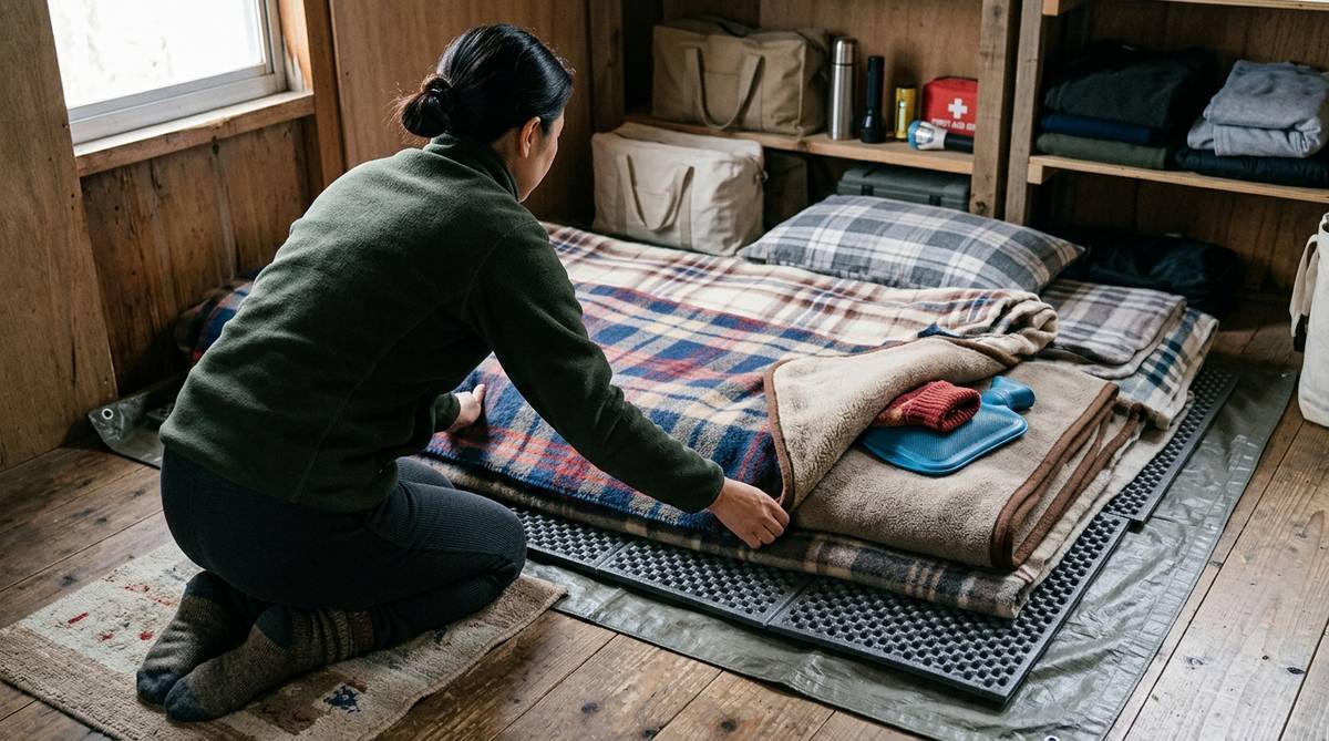 冬の屋外で夜を越すために最も重要なのは、体温を一定以上に保ち続けることです。多くの方が「厚手のシュラフ」を唯一の解決策と考えがちですが、実は体温を逃がさない方法は多岐にわたります。
